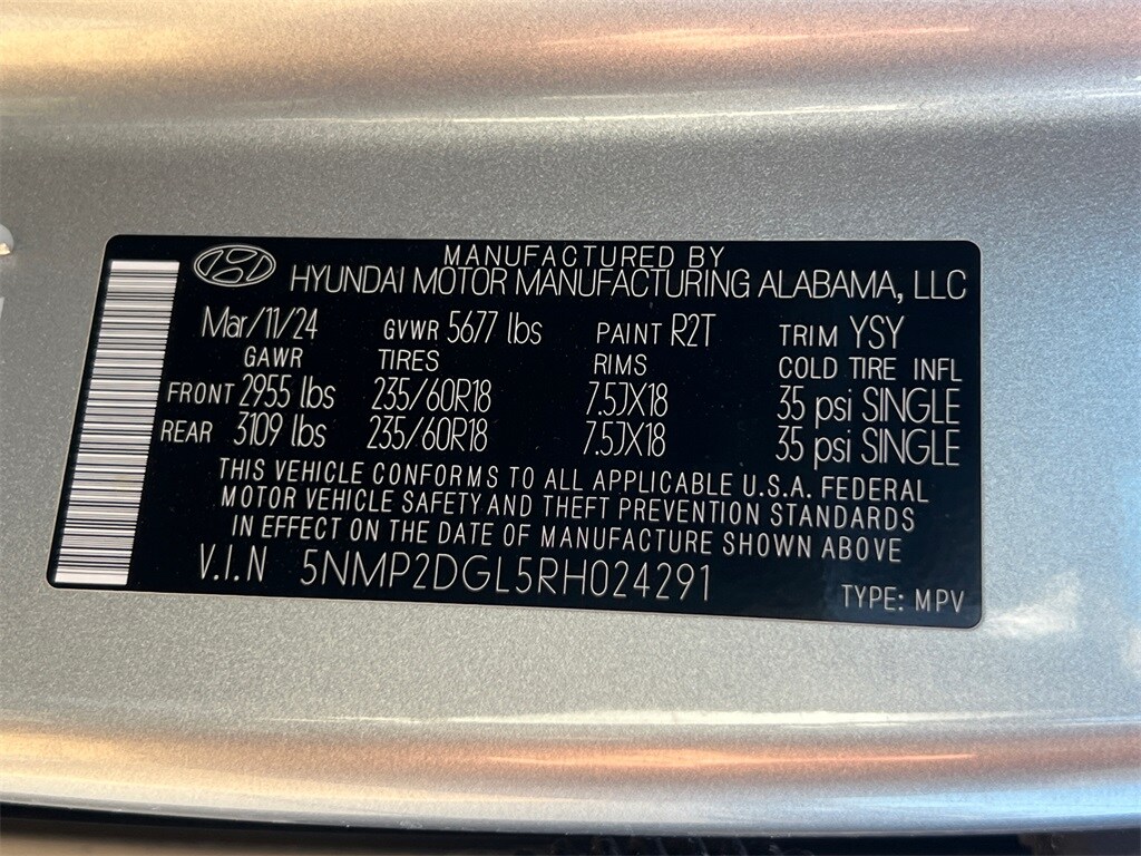 2024 Hyundai Santa Fe SEL Shimmering Silver 2.5L I4 4D Sport Utility AWD Shiftronic 20/28 City/Highway MPG